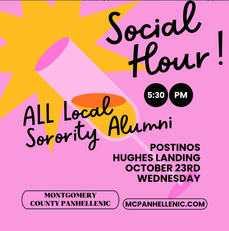 Our Alumni Social Hours offers a time for all Greek women in Montgomery County to reconnect, network, and enjoy great company in a welcoming atmosphere!